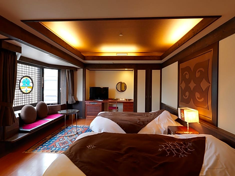 Features Western-style beds and a tatami (woven-straw) seating area. Room features traditional Ainu decors and warm interiors. Includes breakfast buffet and dinner buffet.
